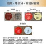 - 選用牛皮及銀龍貼者請特別注意,勿要求顏色準確度,底色就是牛皮色及銀色,無法告知上色後的色彩標準,較適合用於單純普通色或單純文字,恕不接受色差退貨之問題