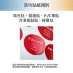 - 一般白底貼紙,較為珠光貼薄一些,但印刷上顏色較準
